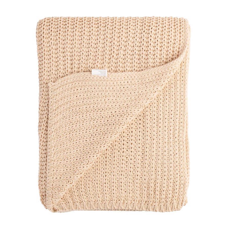 Плед вязаный бежевого цвета